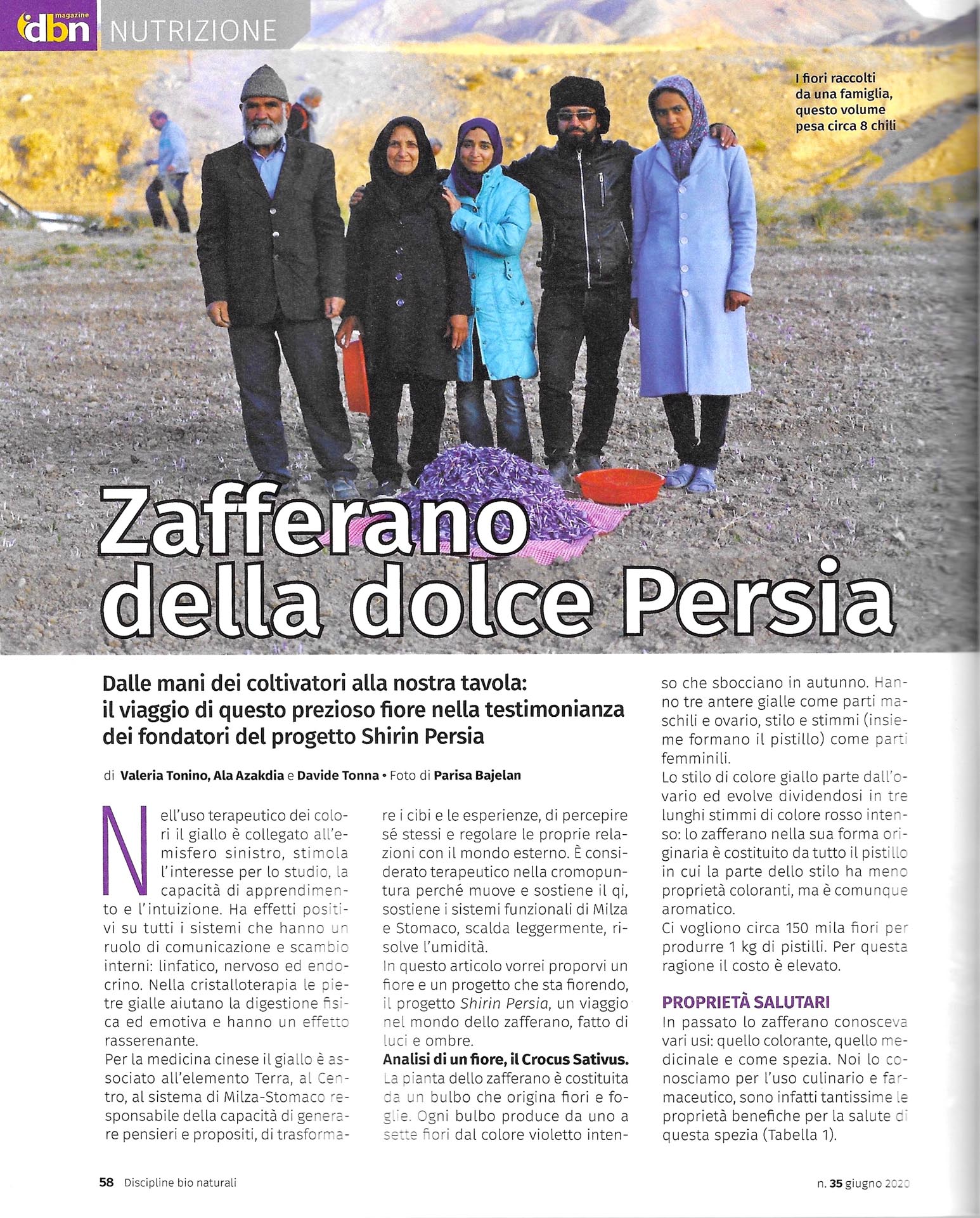DBN MAGAZINE la rivista dedicata allo Shiatsu e alle Discipline Bio Naturali parla di Shirin Persia. Se volete scoprire tutti i benefici dello zafferano e le connessioni con la medicina cinese leggete questo bell'articolo. Scoprirete anche nuovi particolari sulla storia dello zafferano, del suo commercio e qualcosa in più sul nostro progetto!