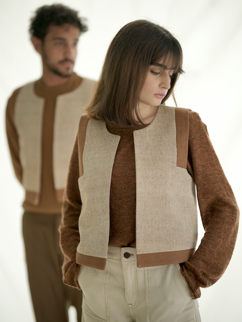 Per la realizzazione dei gilet in lana di dromedario ogni passaggio è eseguito a mano: dalla filatura della lana alla cucitura dei capi di abbigliamento.